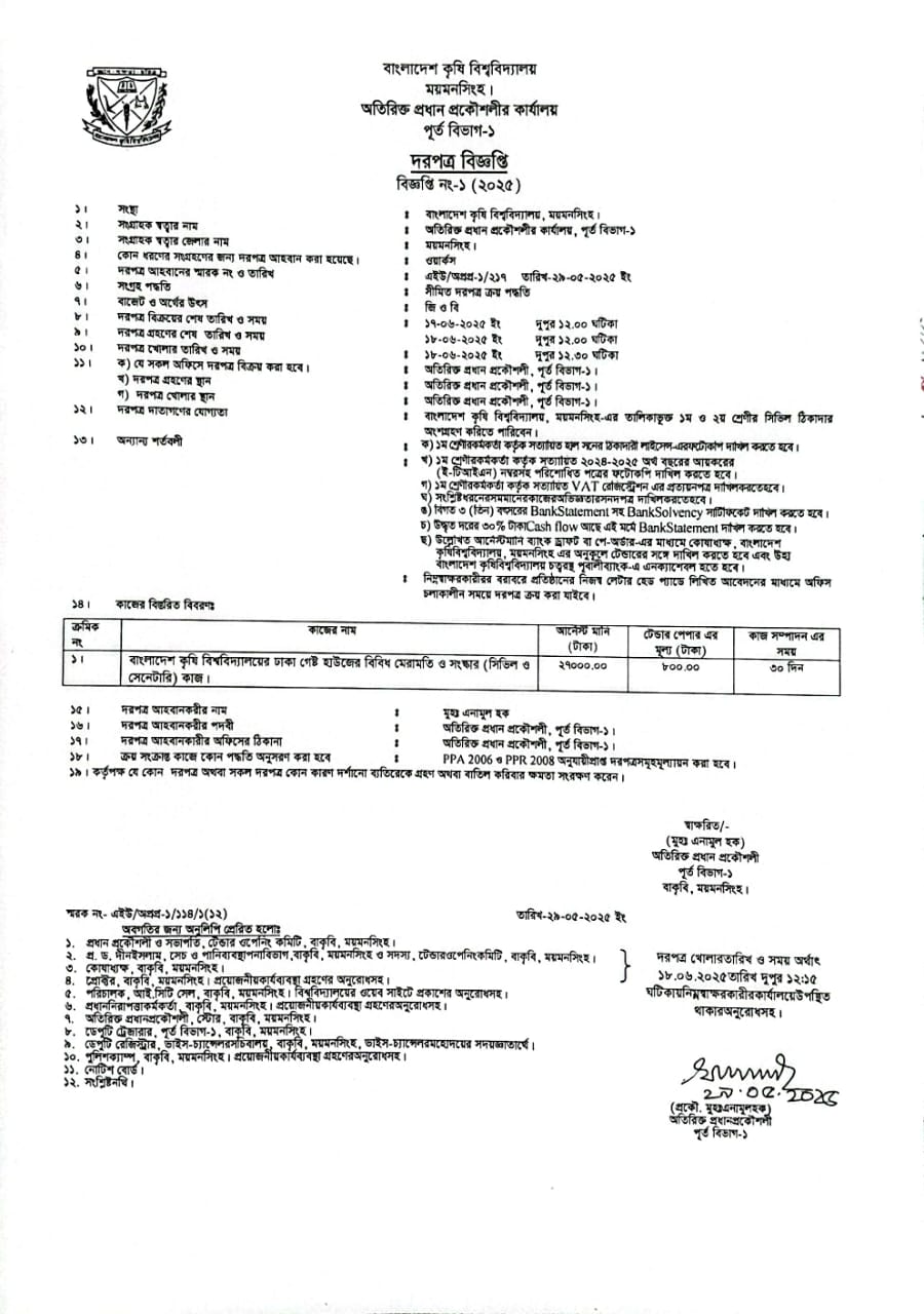 দরপত্র বিজ্ঞপ্তি