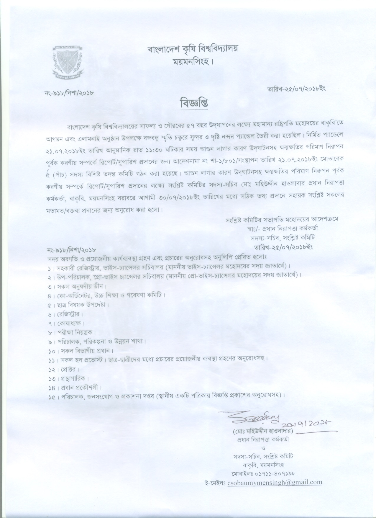 বাকৃবি সাফল্য ও গৌরবের ৫৭ বছর উদ্যাপনের লক্ষ্যে নির্মিত প্যান্ডেলে আগুন লাগা বিষয়ে সঠিক তথ্য প্রদান সহায়ক বিজ্ঞপ্তি