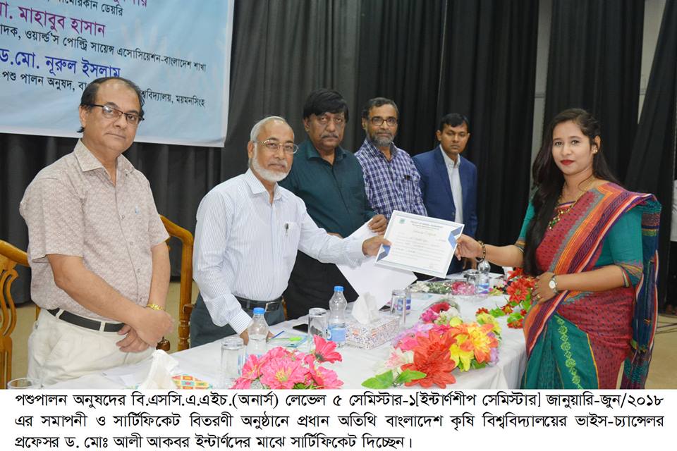 বাংলাদেশ কৃষি বিশ্ববিদ্যালয় থেকে মোঃ মোখলেছুর রহমান খান মুনির, মার্চ- ২৯ ঃ পশুপালন অনুষদের বি.এসসি.এ.এইচ.(অনার্স) লেভেল ৫ সেমিস্টার-১[ইন্টার্ণশীপ সেমিস্টার] জানুয়ারি-জুন/২০১৮ এর সমাপনী ও সার্টিফিকেট বিতরণী (গত ২৮ মার্চ ২০১৯) বৃহস্পতিবার বিশ^বিদ্যালয়ের সৈয়দ নজরুল ইসলাম সম্মেলন ভবনে অনুষ্ঠিত হয়।