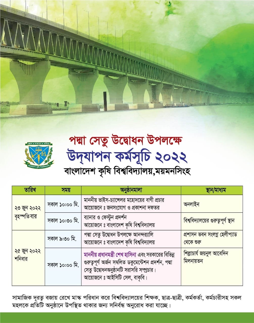 আগমীকাল ২৫.০৬.২০২২ তারিখ পদ্মা সেতু উদ্বোধনী অনুষ্ঠান উদযাপন উপলক্ষ্যে অত্র বিশ্ববিদ্যালয়ের মাননীয় ভাইস-চ্যান্সেলর-এর শুভেচ্ছা বাণী এবং অনুষ্ঠান কর্মসূচী প্রেরণ প্রসঙ্গে