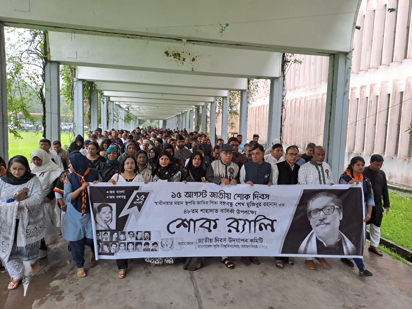 যথাযথ মর্যাদা এবং ভাবগাম্ভীর্যের মধ্য দিয়ে বাংলাদেশ কৃষি বিশ্ববিদ্যালয়ে (বাকৃবি) জাতীয় শোক দিবস পালিত হয়েছে।