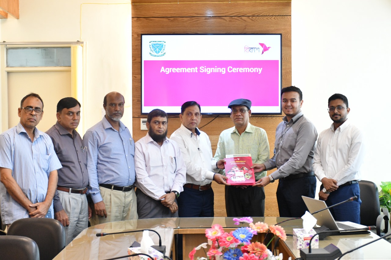 চুক্তি স্বাক্ষর অনুষ্ঠানে উপস্থিত ছিলেন বিশ্ববিদ্যালয়ের মাননীয় উপাচার্য অধ্যাপক ড. এমদাদুল হক চৌধুরী, ছাত্র বিষয়ক উপদেষ্টা প্রফেসর ডক্টর হারুন অর রশীদ,
