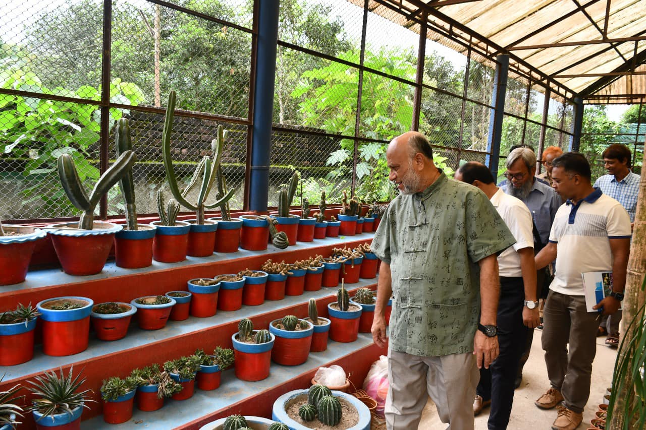 এসময় ভাইস-চ্যান্সেলর প্রফেসর ড. এ.কে.ফজলুল হক ভূঁইয়া অতিথিবৃন্দসহ বোটানিক্যাল গার্ডেনে অবস্থিত পট হাউস এবং ক্যাকটাস হাউস পরিদর্শন করেছেন। তিনি এসময় ক্যাকটাস হাউসে বিভিন্ন প্রজাতির বাহারি ক্যাকটাস দেখে মুগ্ধ হয়েছেন । কিউরেটর প্রফেসর ড. মো. নেছার উদ্দীন বোটানিক্যাল গার্ডেনের নানাবিধ বৃক্ষের বিষয়ে নবনিযুক্ত ভাইস চ্যান্সেলরকে অবহিত করেন এবং বোটানিক্যাল গার্ডেনকে আরও সমৃদ্ধ করতে তাঁর সহযোগিতা চান ।