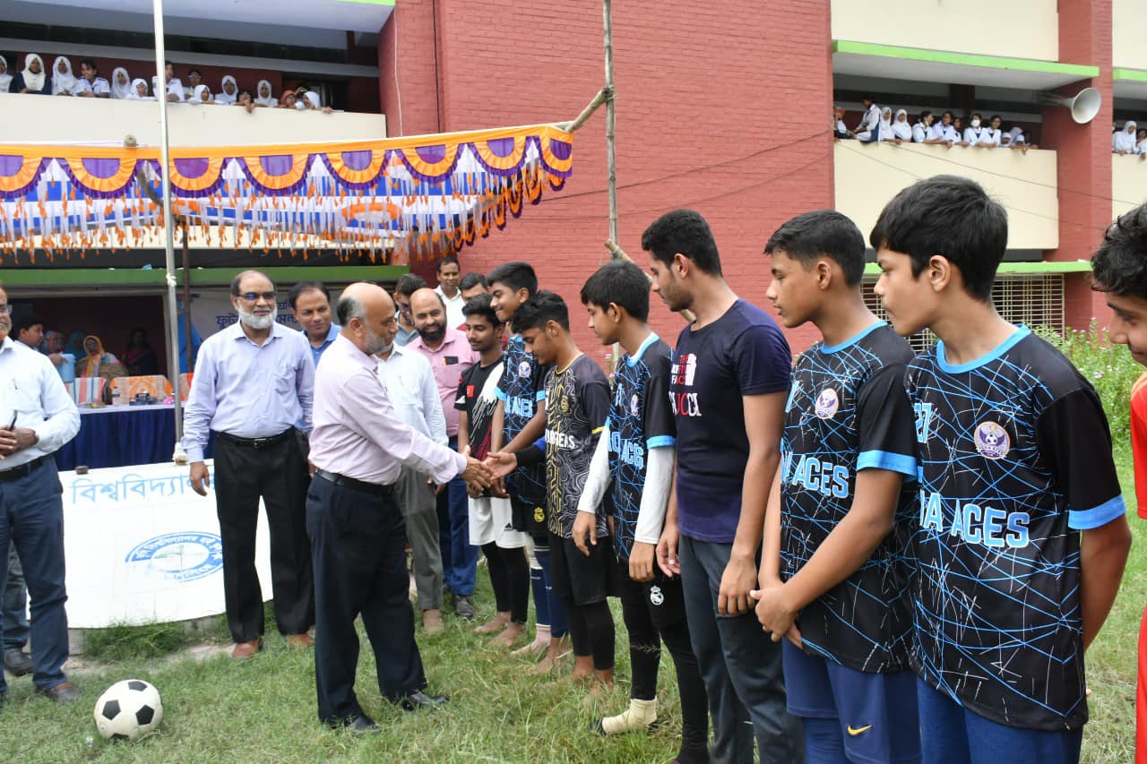 প্রধান অতিথি বিশ্ববিদ্যালয়ের ভাইস-চ্যান্সেলর ড. এ.কে. ফজলুল হক ভূঁইয়া বক্তব্যের শুরুতেই ২০২৪ সনের জুলাই-আগস্টে বৈষম্যবিরোধী ছাত্র-জনতার আন্দোলনে যারা শহীদ হয়েছেন এবং যারা শারীরিক অক্ষমতায় পতিত হয়েছেন সে সকল বীর সেনানীদের প্রতি গভীর শ্রদ্ধা এবং অন্তরের অন্তস্থল থেকে কৃতজ্ঞতা প্রকাশ করেন। তিনি স্কুলের ছাত্র-ছাত্রীদের খেলাধুলা ও বিভিন্ন ক্রীড়ায় অংশগ্রহণের মাধ্যমে শারীরিক সক্ষমতা বৃদ্ধি করে দেশ গঠনে এগিয়ে আসার আহবান জানান এবং ফুটবল খেলাকে আরও এগিয়ে নেয়ার পরামর্শ দেন।