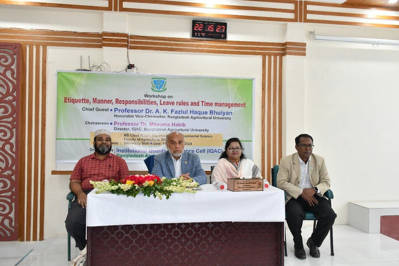 বাংলাদেশ কৃষি বিশ্ববিদ্যালয়ের ইনস্টিটিউশনাল কোয়ালিটি এসু্রেন্স সেল (আইকিউএসি) কর্তৃক বিশ্ববিদ্যালয়ে কর্মরত ৩য় শ্রেণীর কর্মচারীদের জন্য আয়োজিত "এটিক্যাট, ম্যানার, রেসপন্সিবিলিটিস, লিভ রুলস এন্ড টাইম ম্যানেজমেন্ট" শীর্ষক কর্মশালার ২য় দিনের উদ্বোধনী অনুষ্ঠানে তিনি এসব কথা বলেন। অনুষ্ঠানে প্রধান অতিথির বক্তব্যে ভাইস-চ্যান্সেলর ড. এ কে ফজলুল হক ভূঁইয়া তাঁর বক্তব্যের শুরুতেই ২০২৪ সনের জুলাই-আগস্টে বৈষম্যবিরোধী ছাত্র-জনতার গণআন্দোলনে যারা শহীদ হয়েছেন এবং যারা আহত হয়ে পঙ্গুত্ব বরণ করেছেন এবং এখনো যারা হাসপাতালে চিকিৎসাধীন আছেন তাদের প্রতি গভীর শ্রদ্ধা ও সমবেদনা ও কৃতজ্ঞতা প্রকাশ করেন। তিনি বলেন যে শেখার কোন বয়স নেই তাই জীবনের প্রতিটি ক্ষেত্রেই যেগুলো সুপরিবর্তন ঘটায় তা শিখতে হবেএবং যেহেতু চাকুরীতে প্রত্যেকটা শ্রেণীই গুরুত্বপূর্ণ এবং প্রত্যেকেরই আত্মমর্যাদা আছে সেহেতু সকল কর্মচারীকে তাদের প্রাপ্য সন্মান দিতে হবে। সেজন্যে তিনি সবাইকে চাকুরীবিধি মেনে চলার জন্যে আহবান জানান। । তিনি বিশ্ববিদ্যালয়কে সামনের দিকে এগিয়ে নেয়ার লক্ষ্যে এবং বিশ্ববিদ্যালয়ের সুনাম অক্ষুণ্ণ রাখার স্বার্থে অত্র প্রতিষ্ঠানকে নিজের বাড়ি মনে করে কাজ করে যাওয়ার জন্য সবাইকে আহবান জানান।এছাড়াও তিনি অফিসের কর্মপরিবেশ উন্নত থেকে উন্নততর করার জন্যে ভবিষ্যতে আরো প্রশিক্ষণ ব্যবস্থার আশ্বাস দেন।