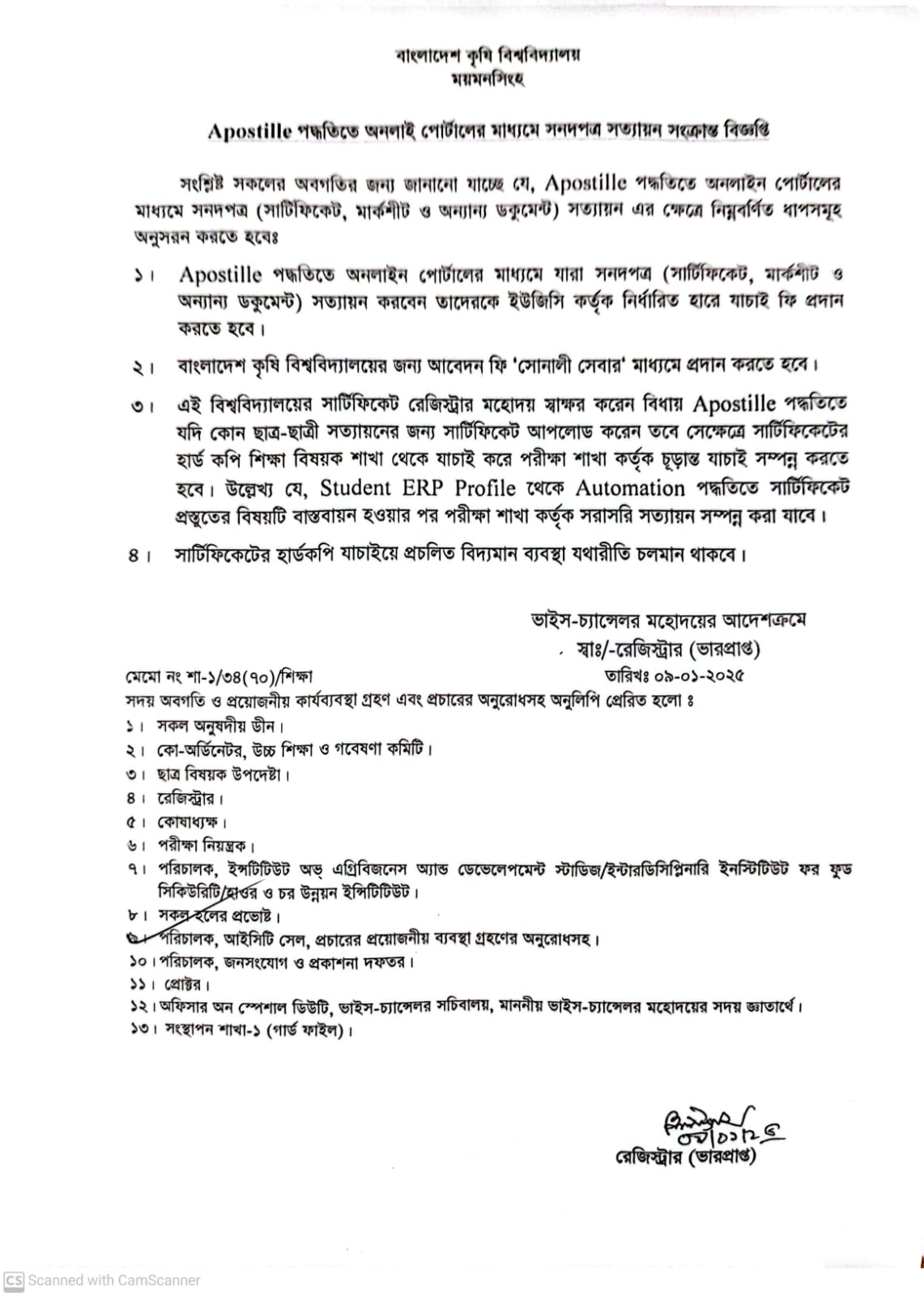 Apostille পদ্ধতিতে অনলাইন পোর্টালের মাধ্যমে সনদপত্র সত্যায়ন সংক্রান্ত বিজ্ঞপ্তি